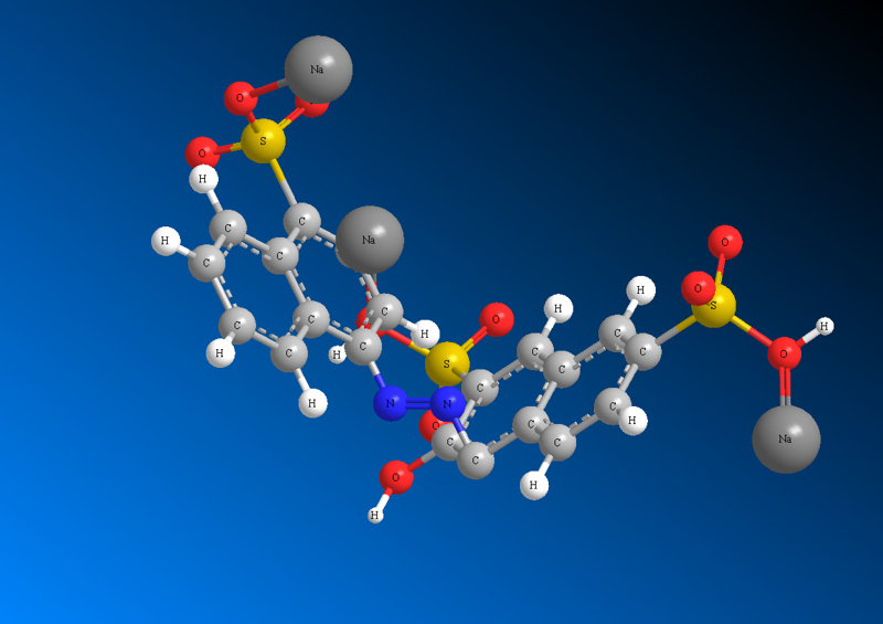 Przykładowa struktura barwnika: C.I. acid red 27 Przykładowa struktura cząsteczki pigmentu: C.I. pigment blue 15