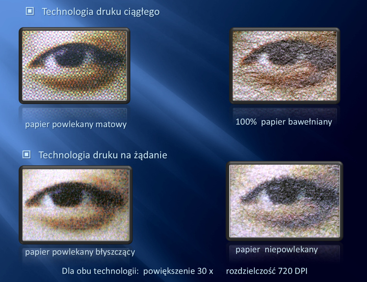 Przykładowe wydruki otrzymane przy pomocy różnych technologii wydruku: